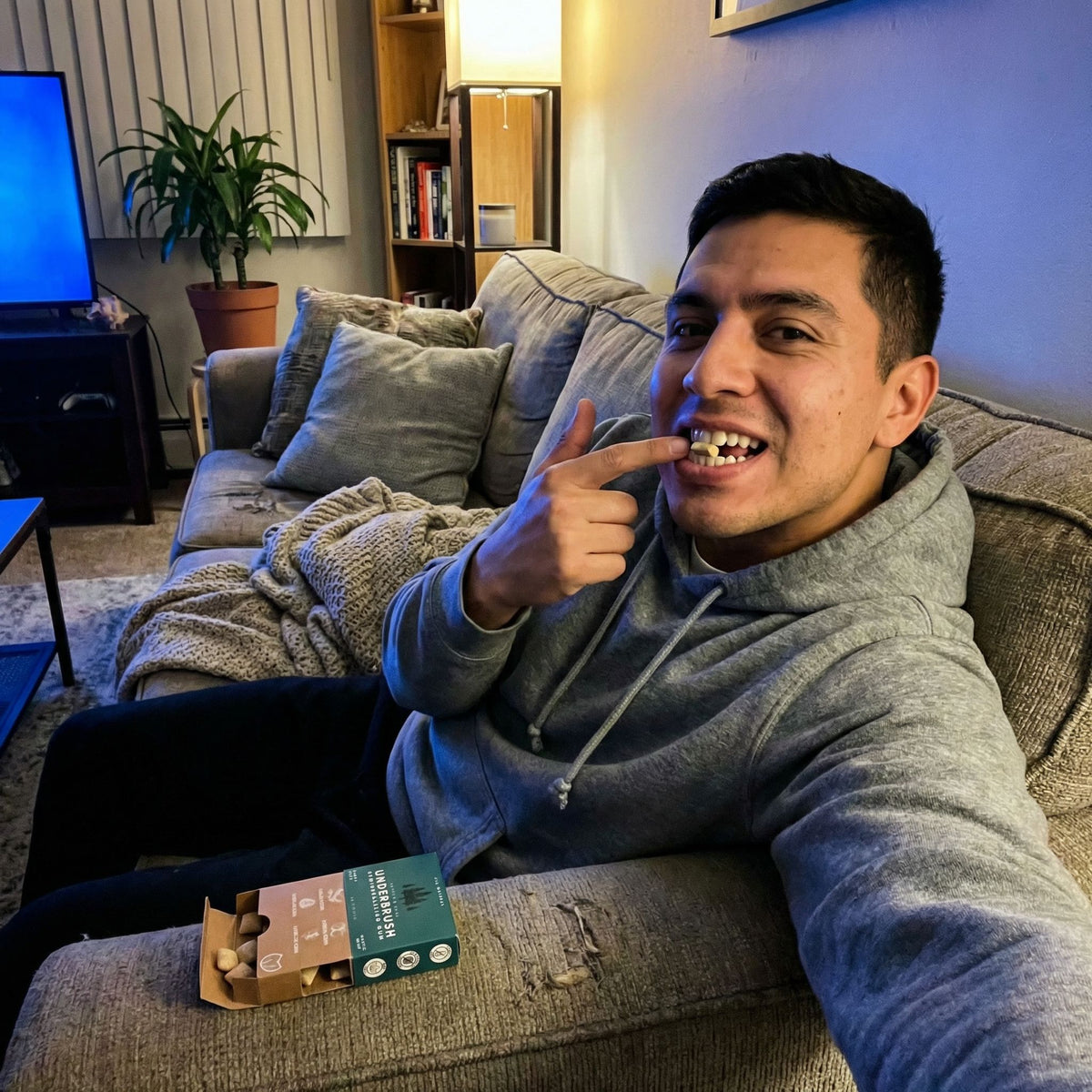 „Ich bin seit Jahren Raucher und hatte immer ein schlechtes Gefühl wegen meines Atems und meiner gelblichen Zähne. Pfefferminzbonbons haben es nur für ein paar Minuten überdeckt und Bleaching‑Streifen haben meine Zähne wehgetan. Diesen Kaugummi nach jeder Zigarette und jedem Kaffee zu kauen, war ein echter Gamechanger – zuerst hat meine Freundin meinen Atem bemerkt, dann habe ich gesehen, wie die braunen Verfärbungen am Zahnfleischrand langsam verschwunden sind. Zum ersten Mal seit ich rauche, schäme ich mich nicht mehr, wenn ich lache oder jemandem nah komme.“